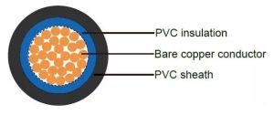 | 227-IEC10 BVV | Copper Conductor PVC Insulated and PVC Sheathed Round Wire | Fixed laid where high mechanical protection and moisture are required. They can be laid in the air or underground. | 70 |