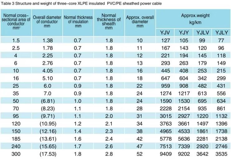 ModelYJV YJLV YJV22 YJLV22 YJV32 YJLV32 YJV42 YJLV42