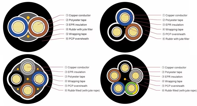 Waterproof rubber cables utilize specialized elastomer compounds that create a continuous protective barrier around conductors. Unlike standard PVC insulation that can degrade when exposed to moisture, quality rubber compounds feature: